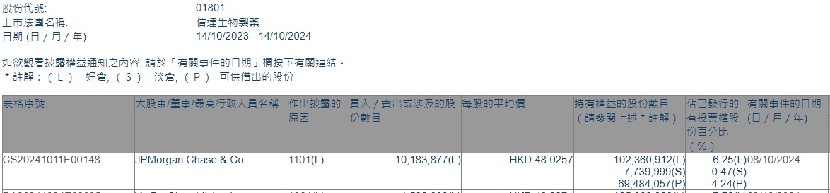 智通财经APP获悉,香港联交所最新资料显示,10月8日,小摩增持信达生物(01801)1018.3877万股,每股作价48.0257港元,总金额约为4.89亿港元。增持后最新持股数目约为1.02亿股,最新持股比例为6.25%。