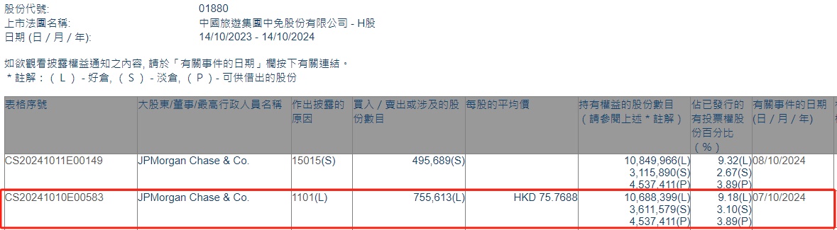 智通财经APP获悉,香港联交所最新资料显示,10月7日,小摩增持中国中免(01880)75.5613万股,每股作价75.7688港元,总金额约5725.19万港元。增持后最新持股数目约1068.84万股,最新持股比例为9.18%。