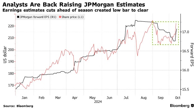 新一轮的财报季开局良好。摩根大通公布第三季度净利息收入意外增长,并上调了这一主要收入来源的预期。该股周五公布收益后上涨约4.5%,富国银行上涨5.6%,显示利率下降的影响并不像人们担心的那么糟糕。
