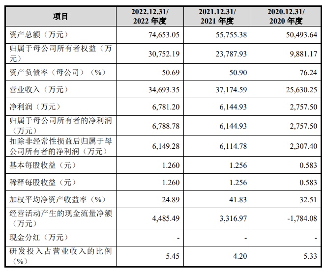 财务方面,2020年度、2021年度以及2022年度,嘉诺科技实现营收分别约为2.56亿、3.72亿以及3.47亿元人民币;同期净利润分别为2757.5万、6144.93万以及6781.2万元人民币。