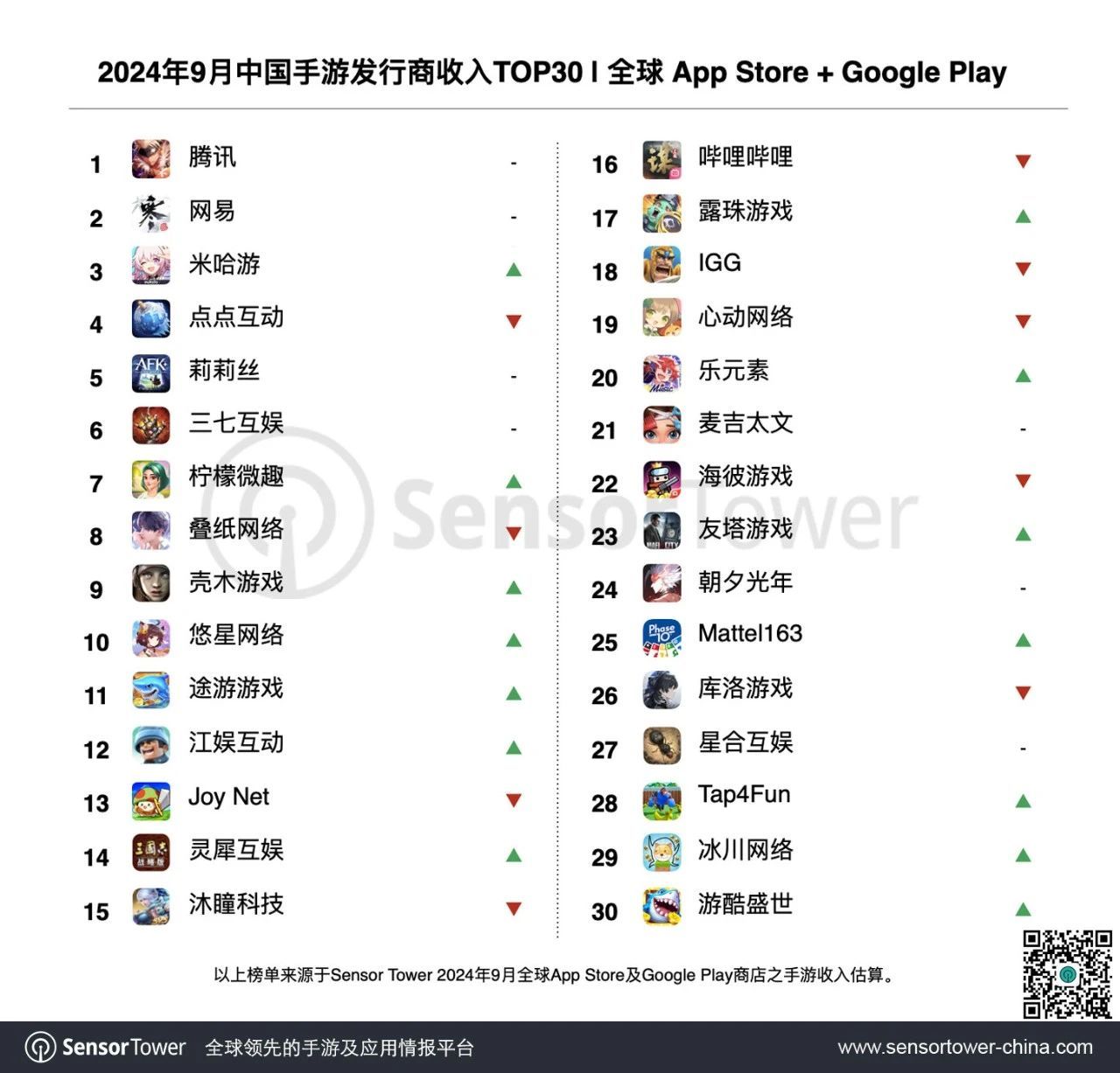 随着中秋月兔模式、中秋夜寻萌兔活动等一系列中秋活动和福利的开启,9月13日腾讯《和平精英》在中国iOS市场日流水迎来2024年以来的最高峰,9月收入环比增长15%,稳居收入榜第3名。