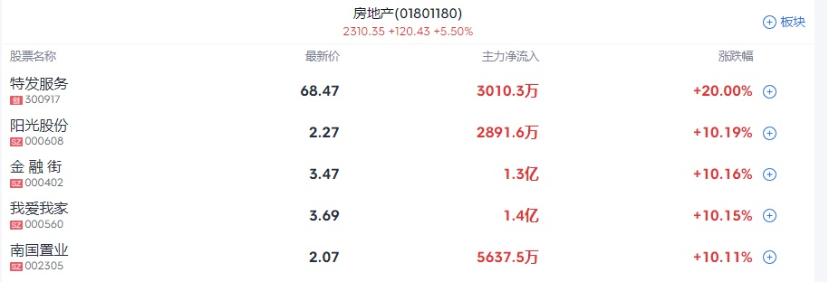 房地产板块震荡走强,阳光股份、金融街、信达地产、中交地产等10余涨停。