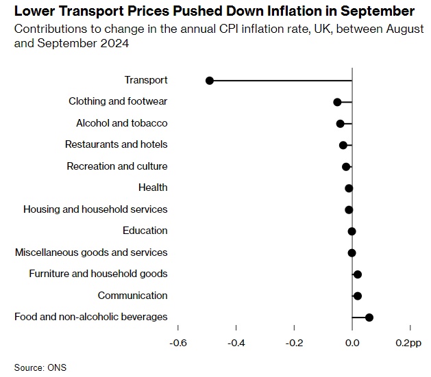 英国国家统计局跟踪的 12 个主要类别中,有五个类别的通胀率低于 2%,而上个月只有四个类别。食品和饮料、服装、家具、住房和交通价格涨幅不到2%。年度涨幅最大的是医疗和电信。