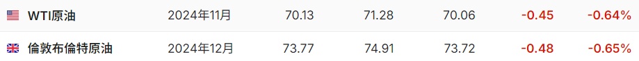 3. 截至发稿,WTI原油跌0.64%,报70.13美元/桶。布伦特原油跌0.65%,报73.77美元/桶。