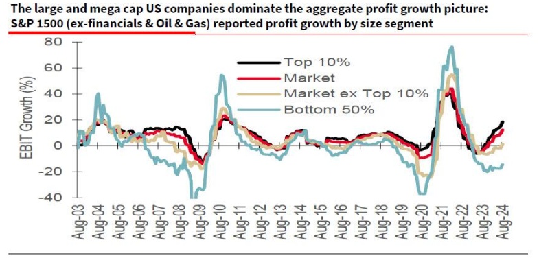 纵观标普1500指数,如果只排除前10%的公司,利润是持平的。而如果排除前50%,利润就会急剧下降。罗素200小型股和NFIB调查的小型非上市公司证实了这一情况。