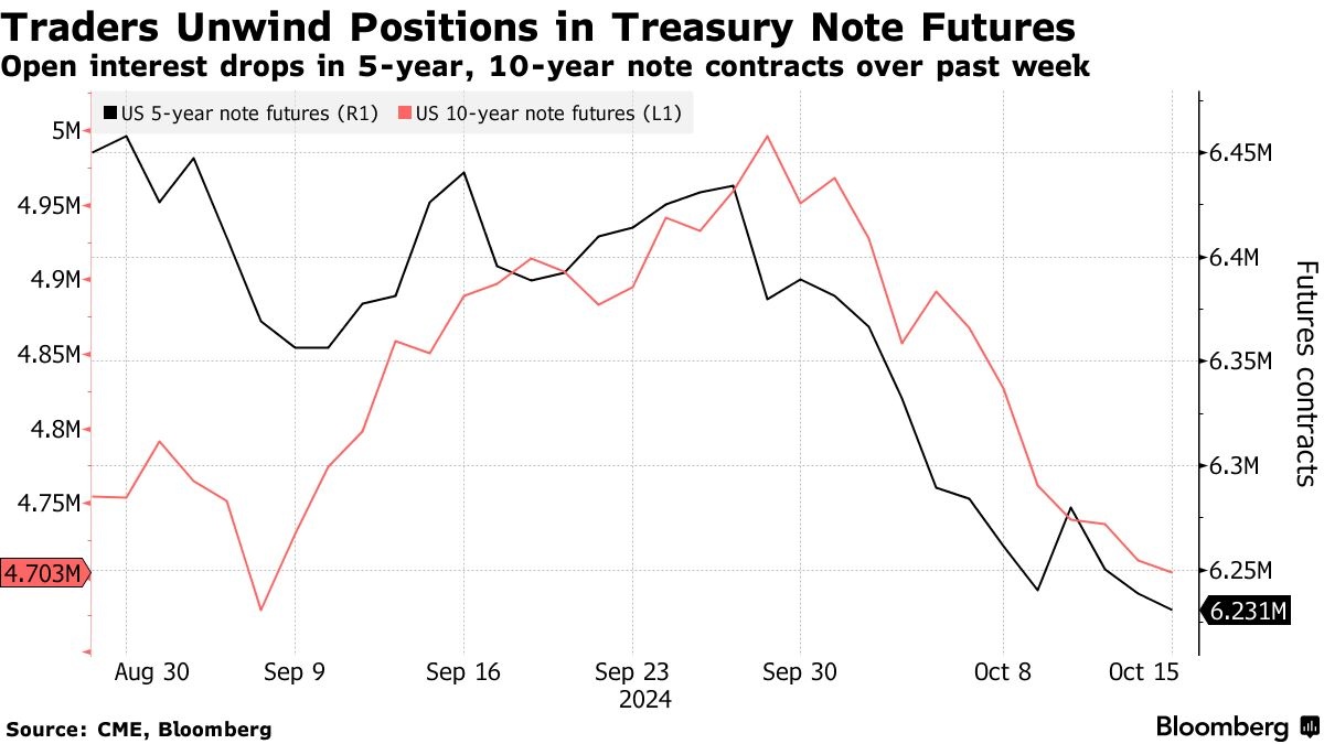 在过去的几个交易日里,有证据表明,随着市场反弹,一些市场的未平仓合约减少,投资者买入以平仓空头头寸。美国银行策略师Meghan Swiber和Anna (Caiyi) Zhang在一份报告中表示,最近的动态使长期债券头寸“脆弱,可能支持进一步的熊市加剧”。