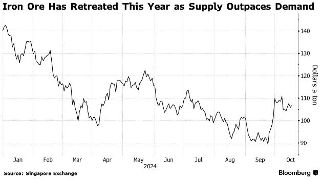 目前,作为全球最大的铁矿石消费国,中国正试图提振陷入困境的房地产行业。尽管国内钢铁需求受到抑制,但这种需求的减少一定程度上被当地制造业和对其它亚洲市场的出口所抵消。