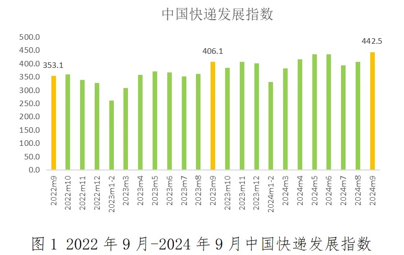 智通财经APP获悉,据国家邮政局10月17日消息,经测算,2024年9月中国快递发展指数为442.5,同比提升9%。其中发展规模指数、服务质量指数、发展能力指数和发展趋势指数分别为539.3、688.1、224.4和69.7,同比分别提升24.2%、2.2%、0.4%和3.9%。9月,快递市场发展动力强劲,规模拓展稳健有序,产业融合深入推进,跨境服务能力趋强。