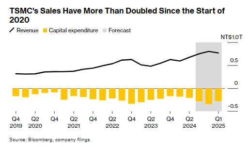 财报公布后,台积电ADR夜盘上涨了约7%。包括Lasertec Corp.在内的日本芯片设备制造商的股价在东京股市也有所收窄。