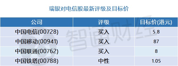 该行调整对该三家电信商的全年业绩预测,相信三者将维持其派息指引,即中国移动派息比率今年起三年内由去年71%升至75%以上,中国电信派息比率今年起三年内由去年70%升至75%以上,以及中国联通改善派息率,该行预测中国联通派息比率由去年55%升至2026年60%。该行对三家电信商最新目标价,相等于中国移动,中国电信及中国联通股息率达6.2%、5.3%及6%。