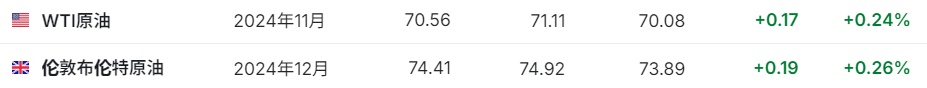 3. 截至发稿,WTI原油涨0.24%,报70.56美元/桶。布伦特原油涨0.26%,报74.41美元/桶。
