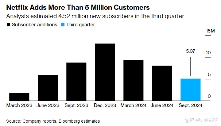 奈飞第三季度新增用户超过500万,各项主要财务指标都超出了华尔街的预期,尽管该公司的新节目计划受到去年好莱坞罢工事件的影响。分析师此前预计奈飞将新增452万用户。