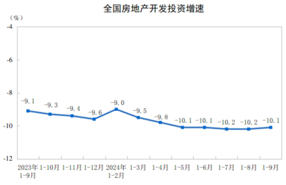 智通财经APP获悉,10月18日,国家统计局数据显示,1—9月份,全国房地产开发投资78680亿元,同比下降10.1%(按可比口径计算);其中,住宅投资59701亿元,下降10.5%。