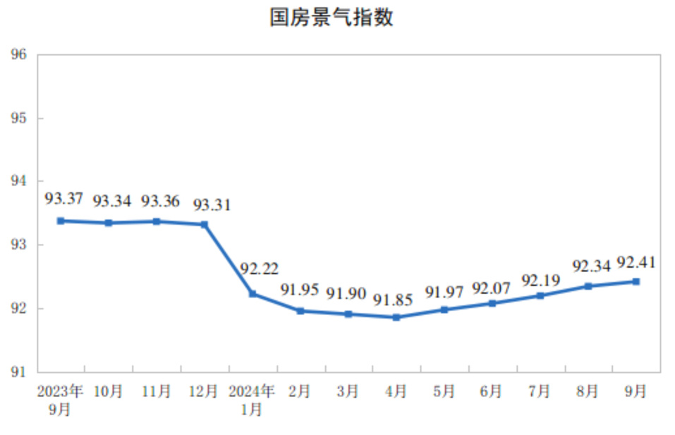9月份,房地产开发景气指数(简称“国房景气指数”)为92.41。