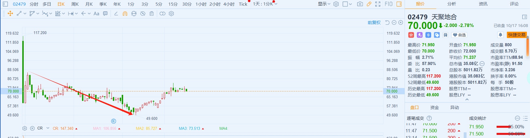 至9月中旬时,港股市场开始走牛,天聚地合股价亦跟随大市上涨,逐渐回升至70港元上方,最大上涨幅度超50%,但仍未走出破发的泥潭。而今又有新的挑战摆在了天聚地合面前,即四名基石投资者在招股阶段认购的383.6万股股份将于2024年12月27日解禁,这无疑会令公司股价承压。市场不禁好奇,在限售股解禁的压力之下,天聚地合未来的股价将何去何从?
