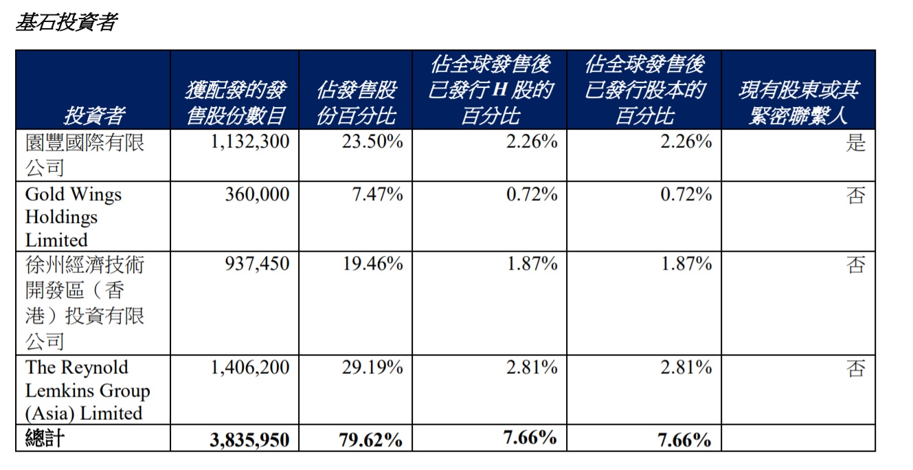 在“丐版发行”+“套路回拨”的同时,为进一步稳定筹码及提振股价,天聚地合引入了四大基石投资者,合共认购约383.6万股。其中瑞凯集团Reynold Lemkins认购约140.62万股,占发行股份的29.19%;苏州工业园区产业投资基金通过园丰国际有限公司认购1113.23万股,占发行股份的23.5%;徐州经济技术开发区委员会海外投资平台认购约93.75万股,占发行股份的19.46%;同时,Gold Wings认购约36万股,占发行股份的7.47%。