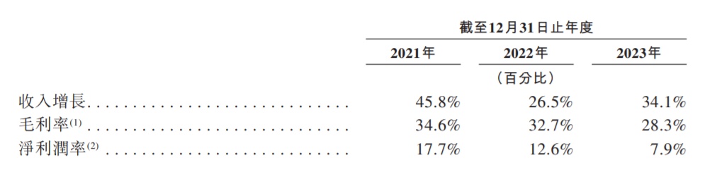 不过,在整体收入快速增长的同时,天聚地合的盈利水平却快速下滑。据招股书显示,2021至2023年,天聚地合的毛利率分别为34.6%、32.7%、28.3%,对应的净利率分别为17.7%、12.6%、7.9%。净利率下滑幅度远超毛利率,这就导致天聚地合在收入快速增长的情况下,净利润却逐年下滑,2021至2023年的净利润分别为4596.6万元、4128.4万元、3506.1万元。