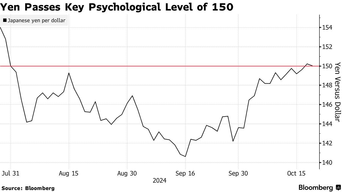 周四,美元兑日元汇率在周四一度突破150大关,至1美元兑150.32日元,这是自8月初以来的首次,原因是强于预期的美国零售销售数据和劳动力市场数据打压了对美联储降息步伐的预期。