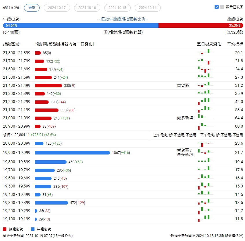 智通财经APP获悉,截至10月19日,恒指最新的牛熊街货比例为65:35。