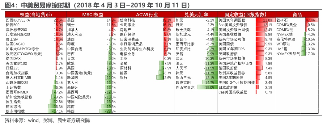 也可以截取中美贸易摩擦的典型时段(图4),也能得出应该做多美元、黄金和长久期发达国家国债,避开新兴市场股市的直观结论。