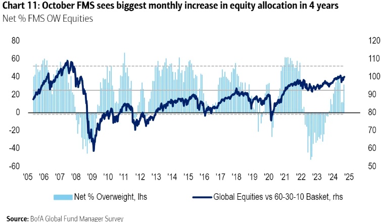 人们对股票的兴奋显而易见,股票配置出现了2020年第一次疫情封锁以来的最大增幅: