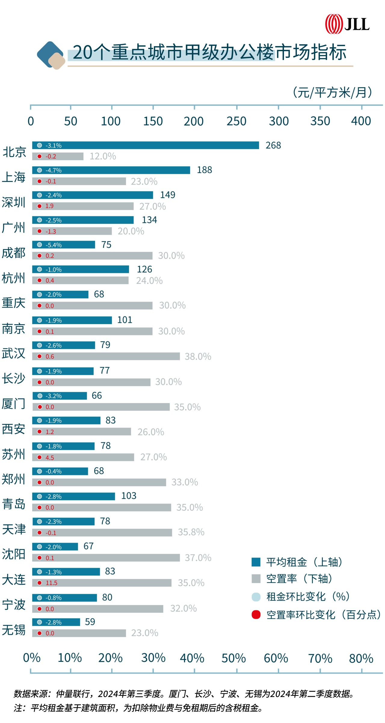 2024年第三季度:头部城市租金调整加剧,空置率上升风险显现