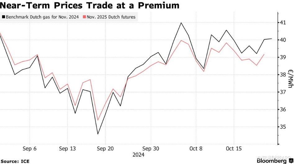 截至发稿,作为欧洲基准的荷兰近月天然气期货价格几乎没有变化,为每兆瓦时39.90欧元。而周一,2025年11月合约收于39.17欧元。