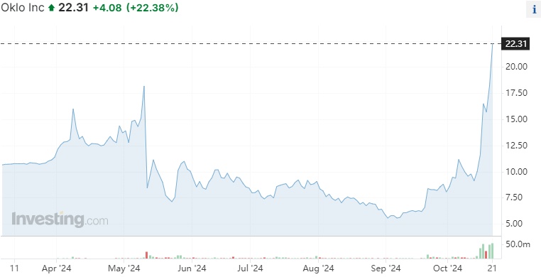 与此同时,美国股市的核电股近期迎来了显著上涨,尤其是Oklo、NuScale Power (SMR.US)等小型核反应堆公司。周一,小型核反应堆概念股继续狂飙,NANO Nuclear Energy (NNE.US)收涨超34%,Oklo大涨超22%,NuScale Power涨超4%。