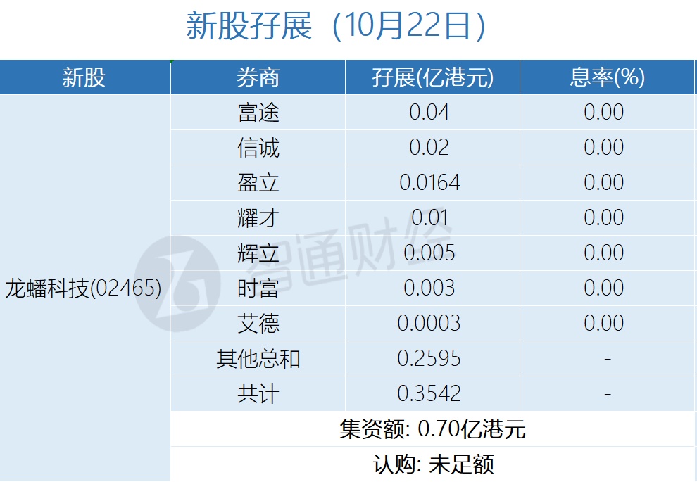 智通财经APP获悉,龙蟠科技(02465)正在招股中。截止10月22日,富途 、信诚 、耀才等券商合计为