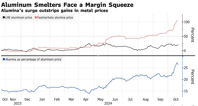 由于从澳大利亚到牙买加等庞大的全球供应链出现了一系列中断,铝价全年都在上涨。为了制造铝,被称为铝土矿的原矿被提炼成氧化铝,然后被熔炼成纯金属。最新的冲击发生在本月早些时候,当时几内亚阻止了阿联酋全球铝业公司(Emirates Global Aluminum)的铝土矿出口,在买家中引发恐慌,这些买家目前正争相抢购氧化铝供应。