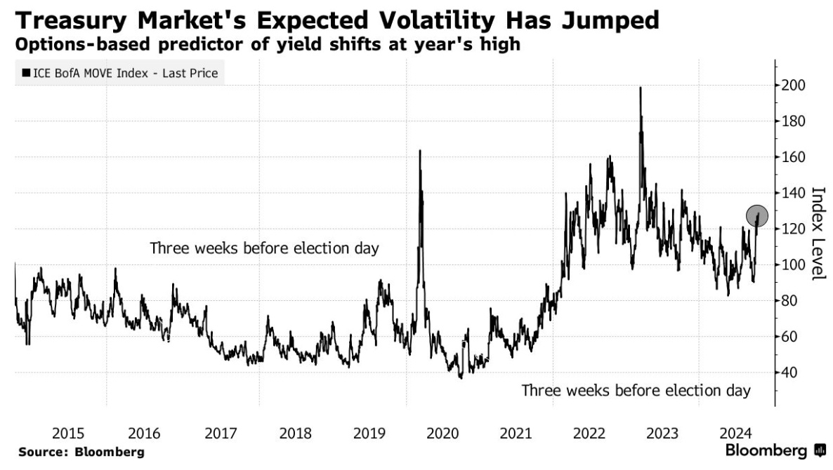 此次收益率上升也反映出人们越来越担心共和党可能在 11 月 5 日的选举中同时控制白宫和国会,这可能会加剧联邦赤字和通胀。