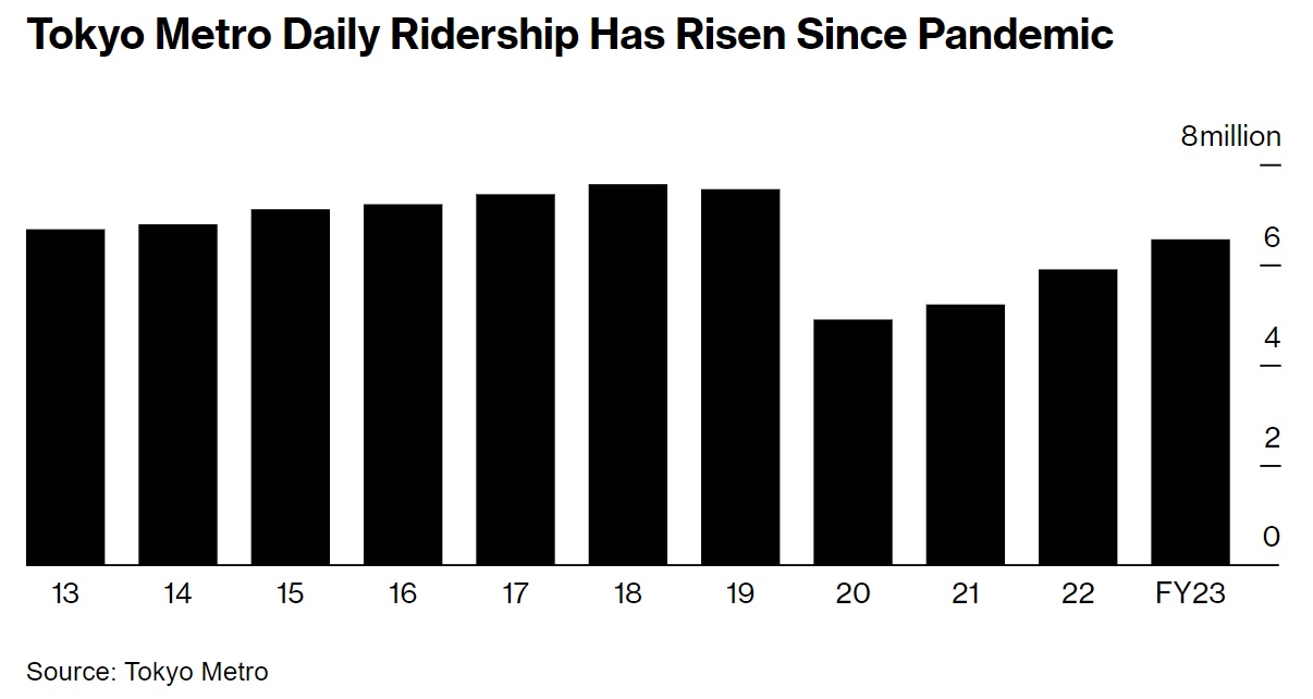 疫情爆发以来,东京地铁每日客流量稳步回升