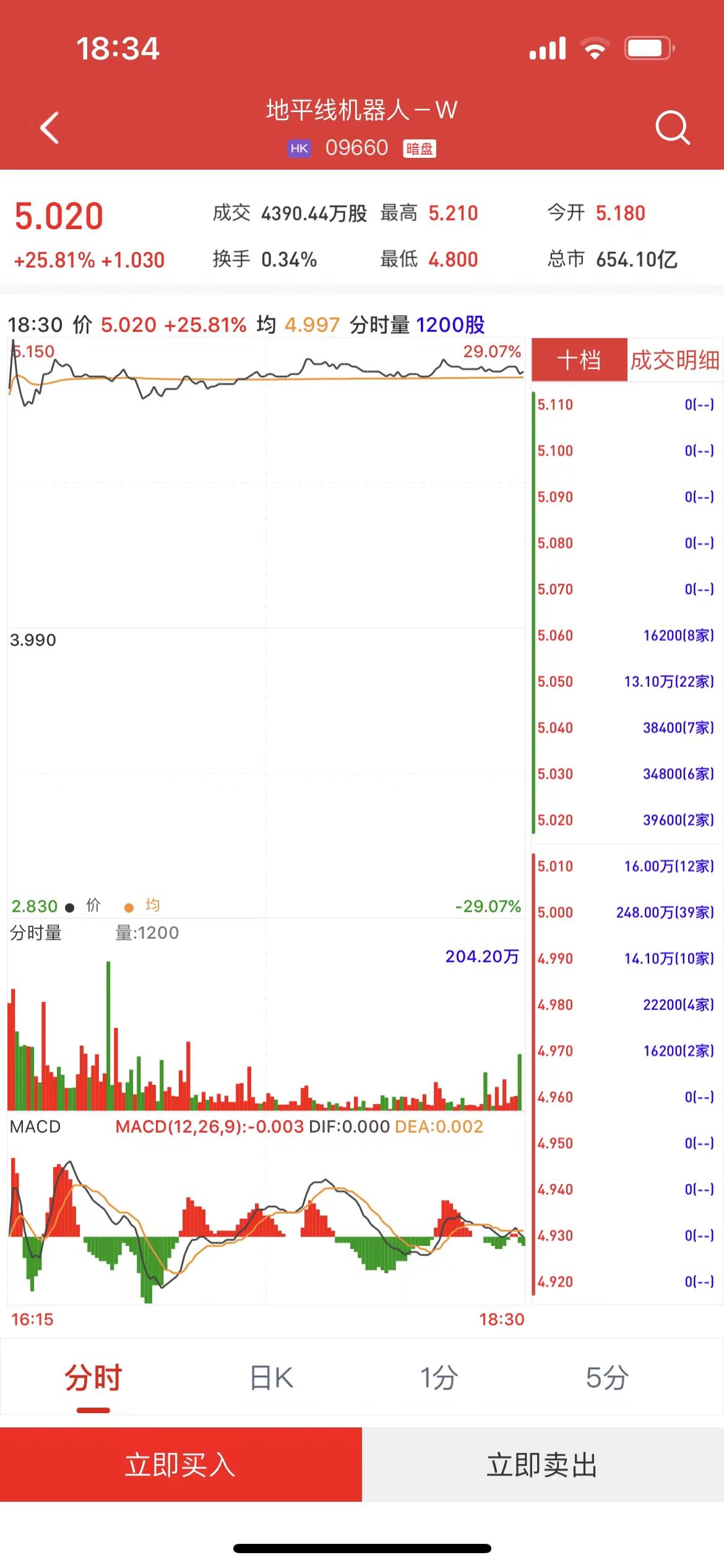 智通财经APP获悉,地平线(09660)将于10月24日(周四)在香港挂牌。截至收盘,利弗莫尔证券暗盘交易显示报价5.02港元,较招股价3.99港元上涨25.81%,每手600股,不计手续费,每手赚618港元。