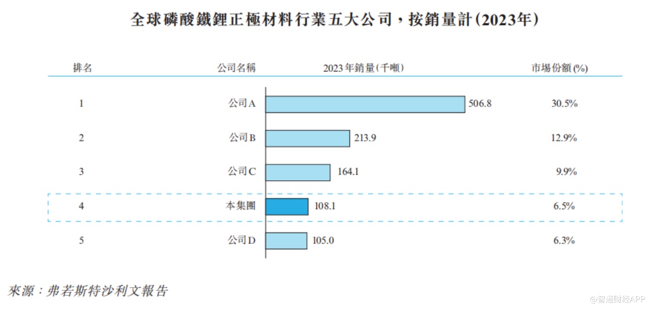 需要注意的是,全球磷酸铁锂正极材料市场规模虽有望保持稳定增长,但行业竞争激烈且高度集中。弗若斯特沙利文资料显示,按2023年的销量计算,五大磷酸铁锂正极材料制造商约占全球市场份额的66.7%,同时,中国内地的磷酸铁锂正极材料销量占全球磷酸铁锂正极材料销量约99%。