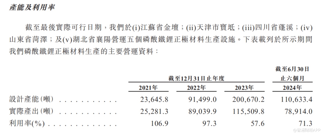 磷酸铁锂正极材料产能方面,截至最后实际可行日期(2024年10月14日),公司于江苏省金坛、天津市宝坻、四川省蓬溪、山东省菏泽、湖北省襄阳营运五个磷酸铁锂正极材料生产设施。截至2023年,公司磷酸铁锂正极材料的设计产能达到20.07万吨,较2021年增长7.49倍。