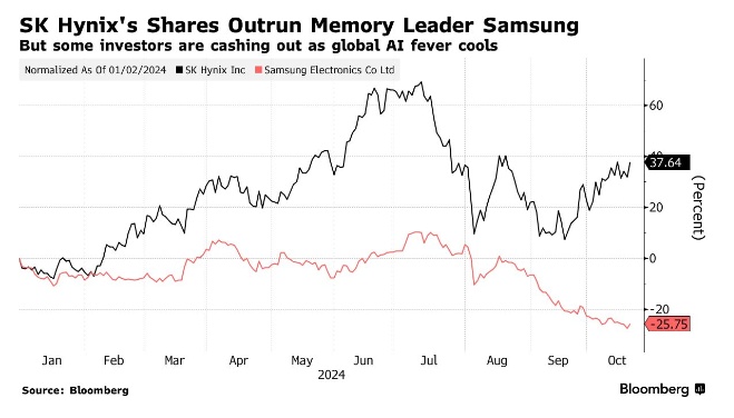 今年以来,SK海力士股价累计上涨逾35%,原因是该公司在设计和供应为英伟达人工智能加速器提供动力的尖端高带宽内存(HBM)方面扩大了对三星电子(SSNLF.US)和美光科技(MU.US)的领先优势。该公司预计将在第四季度向英伟达供应其12层堆叠的HBM3E內存。