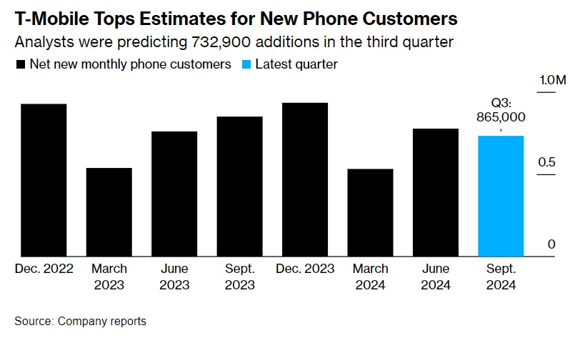 智通财经APP获悉,美国最大规模无线电信运营商之一T-Mobile US Inc.(TMUS.US)周三美股盘后公布Q3业绩,数据显示该公司第三季度的移动电话和宽带用户月增长量超出了华尔街分析师普遍预期,这也促使该公司上调了今年的新客户预期以及利润预期。