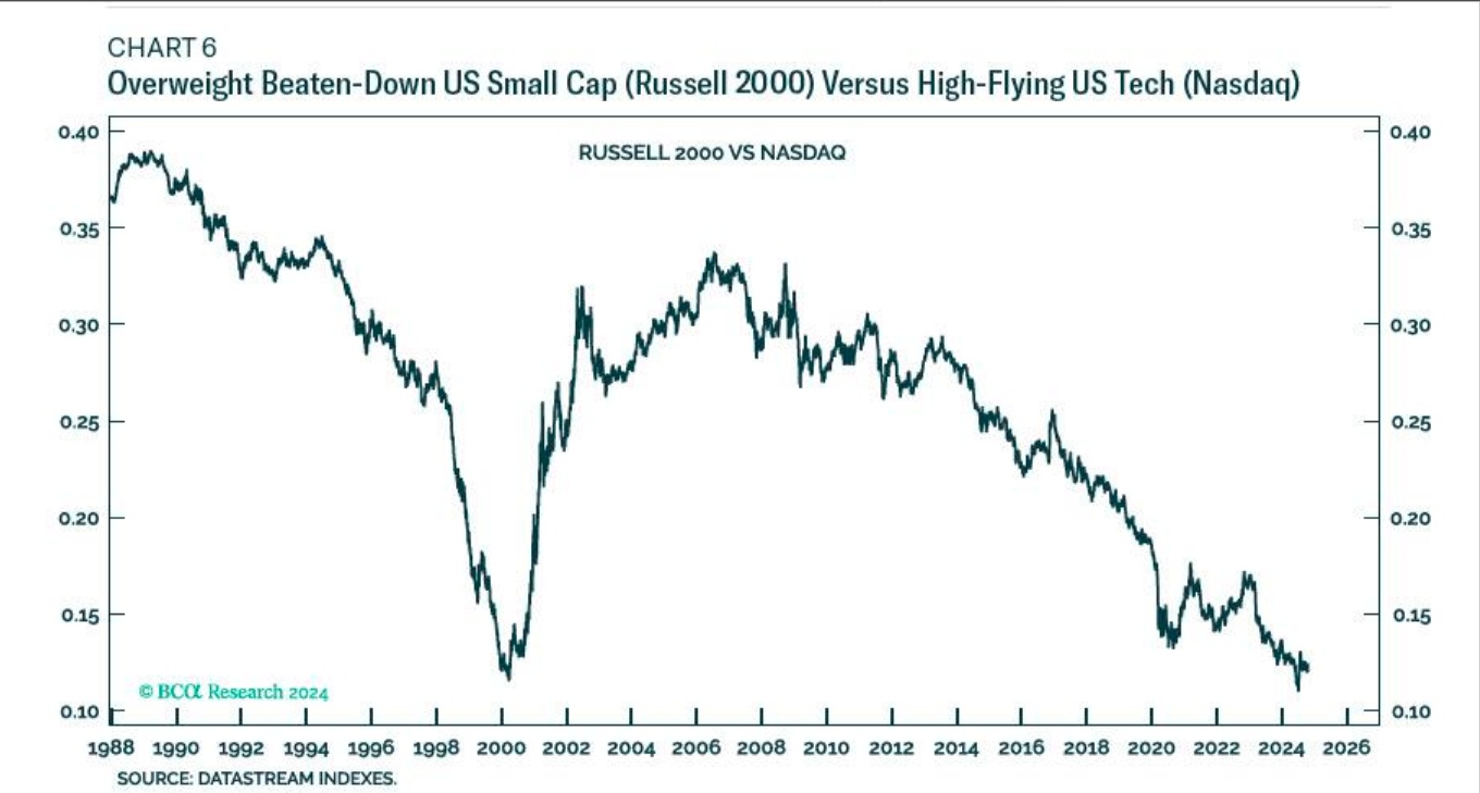 第三,相对于美国科技股(纳斯达克指数)而言,不妨可以超配美国小盘股(罗素2000指数)。