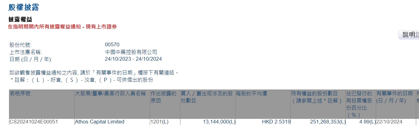 智通财经APP获悉,香港联交所最新资料显示,10月22日,Athos Capital