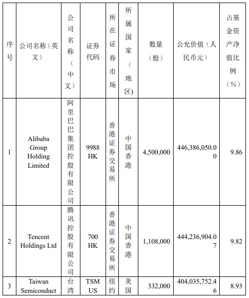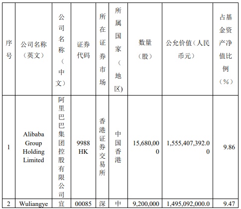 阿里巴巴位列第二大重仓股 腾讯控股再次遭较大幅度减持