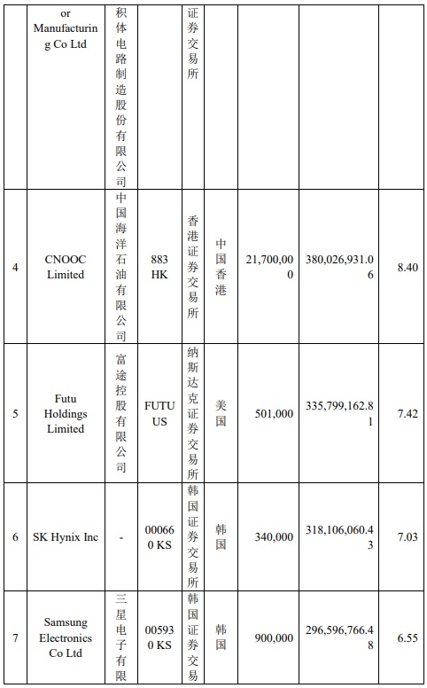 个股持仓方面,一家从事半导体存储器的生产和销售业务的公司——SKHynixInc(海力士半导体)从二季度末时的第16大重仓股一举跃升为第六大重仓股,所占基金净值比为7.03%。同时,富途控股、普拉达则均获小幅度加仓。