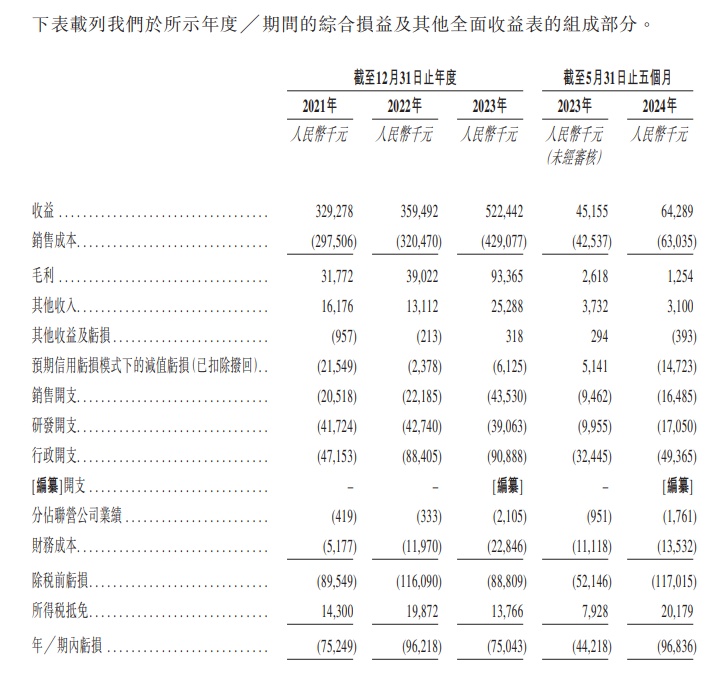截至2021年、2022年及2023年12月31日止年度以及截至2023年及2024年5月31日止五个月,公司的大部分收入来自车载高压供氢系统及相关产品以及加氢站设备及相关产品。其中,车载高压供氢系统及相关产品所产生的收入于截至2021年、2022年及2023年12月31日止年度以及截至2023年及2024年5月31日止五个月分别占公司总收入约57.5%、76.7%、57.6%、71.8%及40.8%。