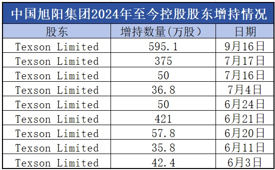 在旭阳集团大手笔回购的同时,公司控股股东也正以坚定态度开启密集增持模式。据统计,今年来旭阳集团控股股东Texson Limited(由杨雪岗先生全资拥有)累计增持了1663.9万股。