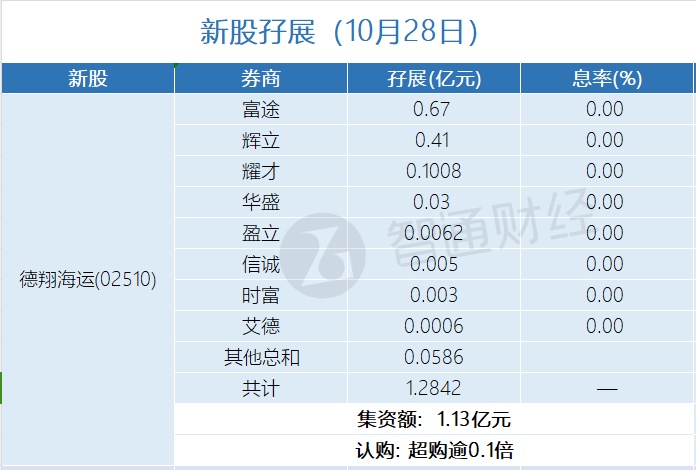 新股孖展统计 | 10月28日