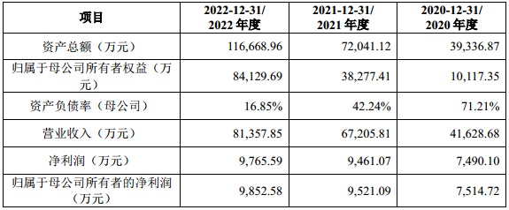 财务方面,于2020年度、2021年度以及2022年度,如鲲新材实现营业收入分别约为4.16亿元、6.72亿元、8.14亿元人民币;同期,该公司实现净利润分别为7490.1万元、9461.07万元、9765.59万元人民币。