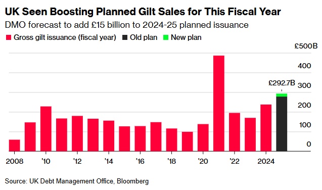 智通财经APP注意到,债券交易员预计,英国本周将提出有史以来规模最大的借款计划之一。英国财政大臣里夫斯正试图在其政府提振增长的承诺与呼吁财政纪律之间取得平衡。