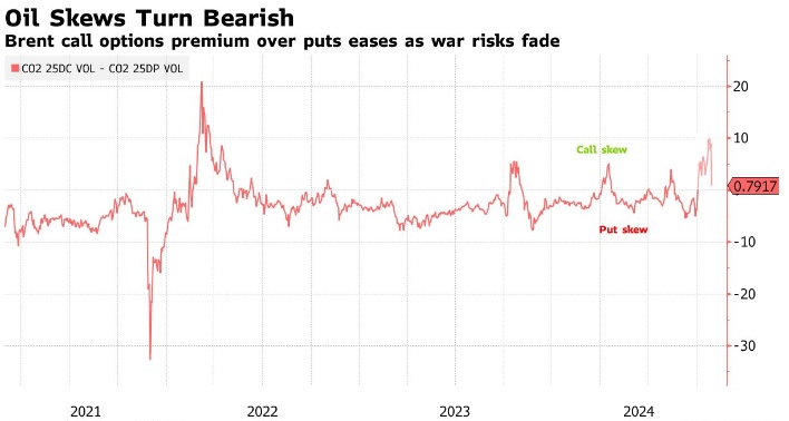 本月围绕中东冲突风险的交易大多发生在期权市场,超过了期货价格的波动。外界猜测,袭击可能会扰乱这个原油产量占全球约三分之一的地区的石油流动,这推动了投资者持有的布伦特原油期权总数创下历史新高。