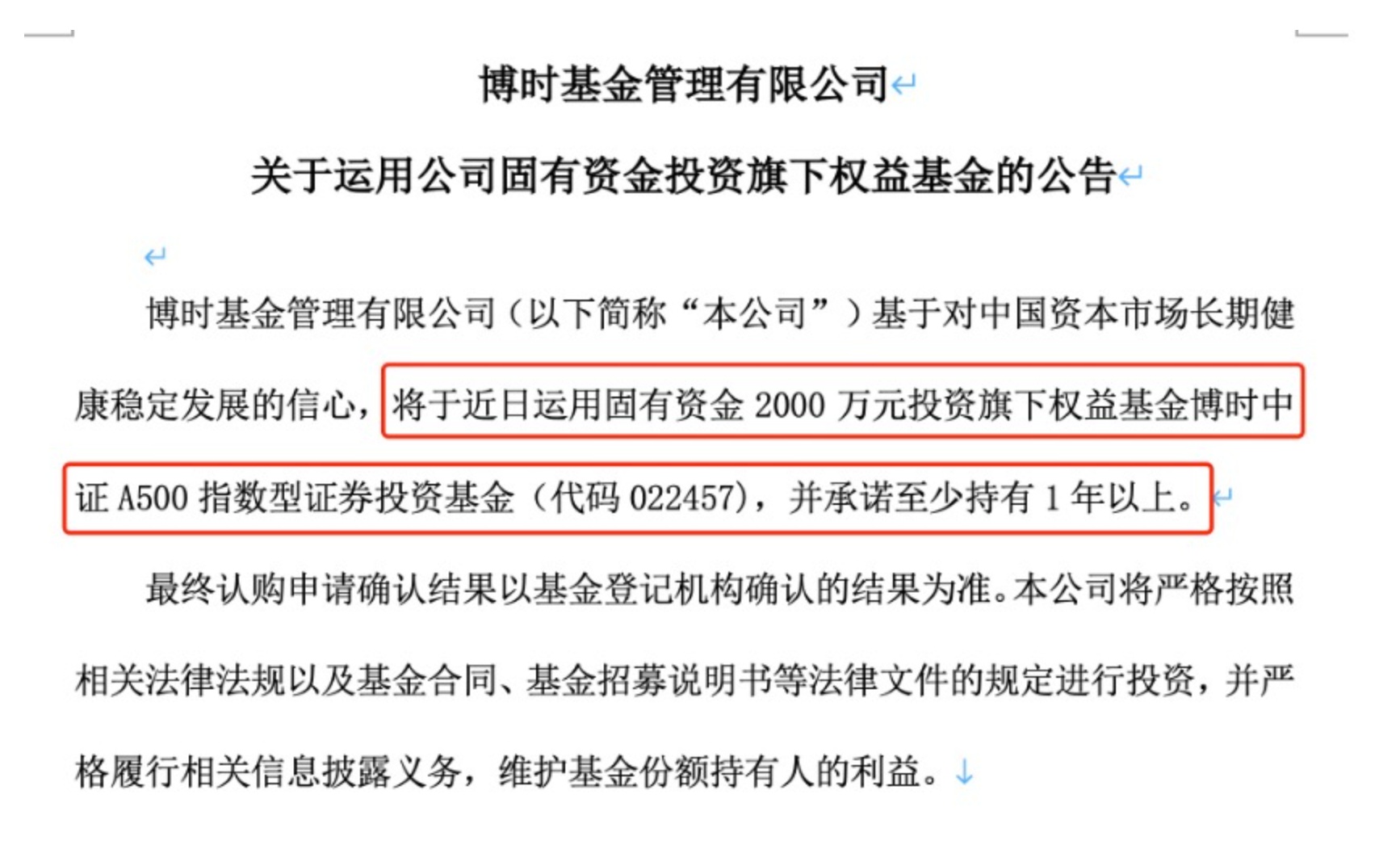 二是博时、景顺长城加入自购大军。博时基金将运用固有资金2000万元投资旗下中证A500指数基金,并承诺至少持有1年以上。在场外基金上,已有包括华泰柏瑞、华商各拟出资2000万自购旗下中证A500指数产品。加上此前在ETF首募阶段自购的嘉实、景顺长城基金,自购大军不断扩容。