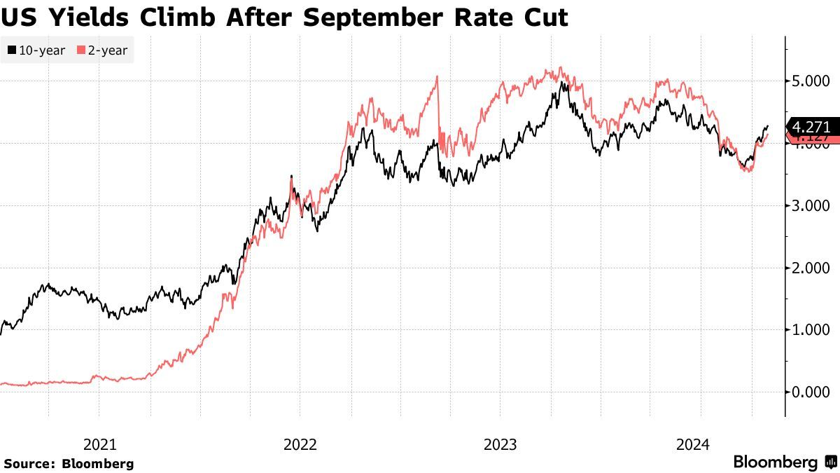 Nick Ferres指出,近期美债收益率上升“反映了通胀预期,但也反映了经济增长”。他补充称:“通胀重新加速意味着基准利率将走高,这将是明年可能面临的挑战。这意味着美联储可能不会进一步降息。”