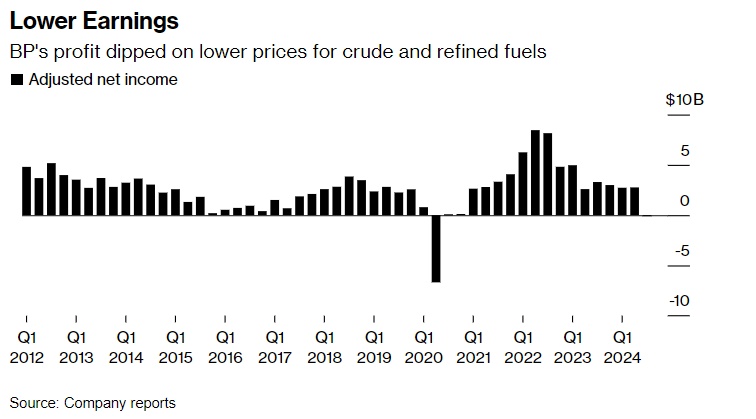 疲软的财报数据以及明年股票回购规模可能发生变化的声明公布之后,英国石油公司股价下跌超1%。2024年迄今,由于国际油价持续疲软,该公司股价下跌超15%,而同期油价则下跌约7%。